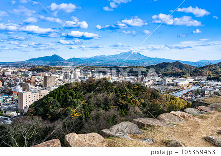 【日本百名山】米子城 大天守から見た初冬の冠雪した大山と米子市街 鳥取県米子市・西伯郡大山町