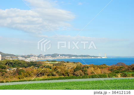 三浦のキャベツ畑が見える風景