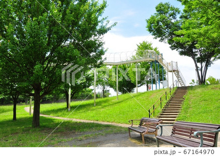 神奈川県茅ケ崎市 県立茅ヶ崎里山公園 風の広場と遊具と新緑