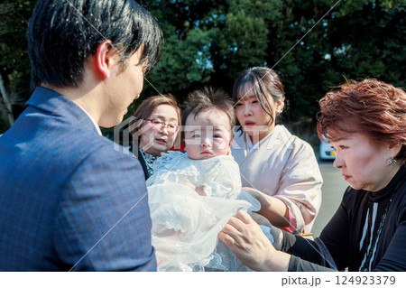 お宮参り 赤ちゃん 家族 育児 子育て 行事 お祝い