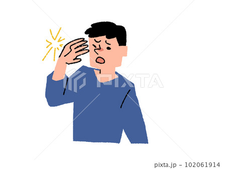眩しさを感じる男性 眼精疲労や目の病気に関するイラスト