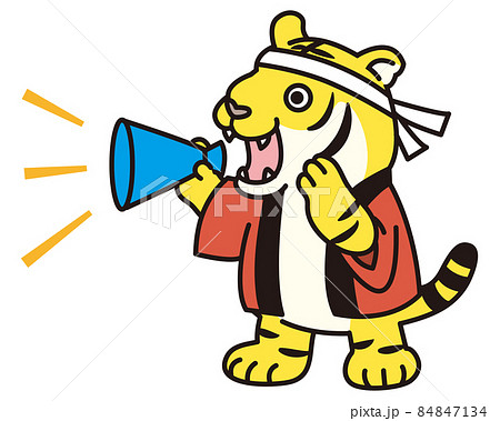 はっぴを着てメガホンで叫んでいる虎のイラスト