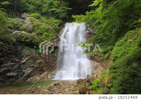 夏の山梨県北杜市 石空川渓谷 精進ヶ滝
