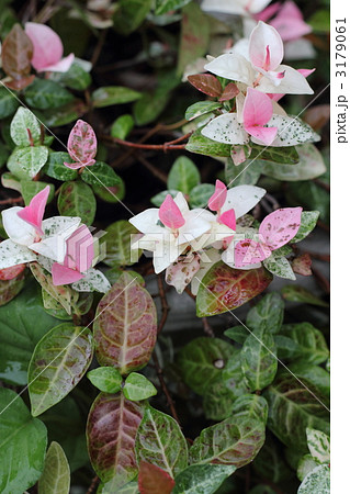 赤とピンク色の葉が混じったハツユキカズラ(初雪葛)