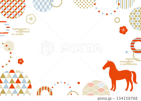 2026年午年の和風モダンなお正月フレームセット_広告や年賀状に使える縁起物や馬のベクター素材集