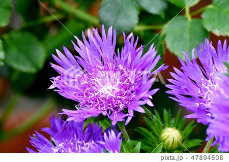 三鷹中原に咲く紫色のストケシア