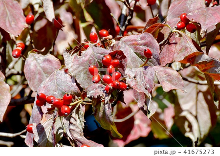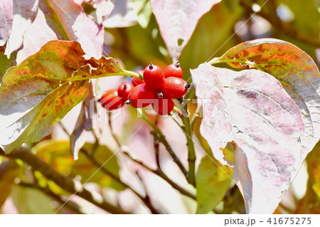 三鷹中原になる赤く色づき始めたハナミズキの実