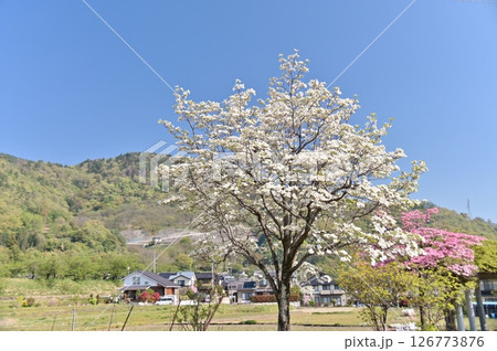 爽やかな青空に映える紅白のハナミズキ