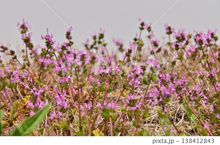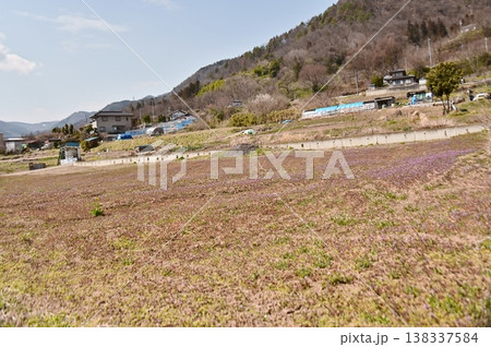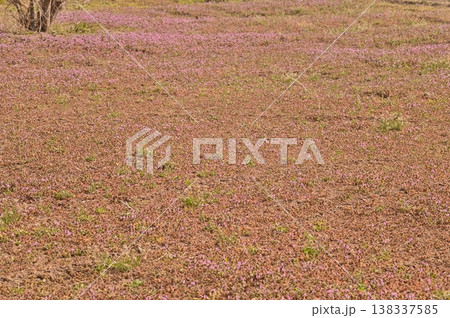 赤紫色の絨毯となった休耕地