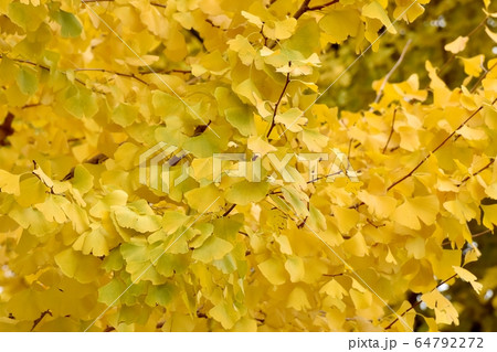 三鷹中原になる黄葉したイチョウの葉