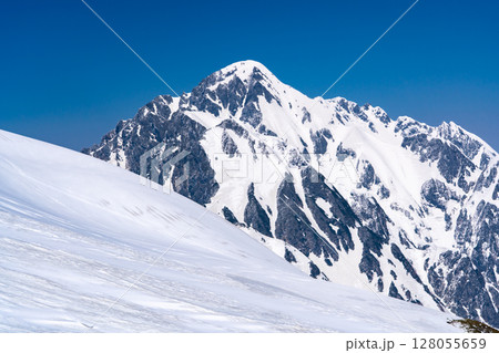 別山へ向かう登山道から見る別山の南峰と北峰 残雪期の北アルプス立山・別山登山