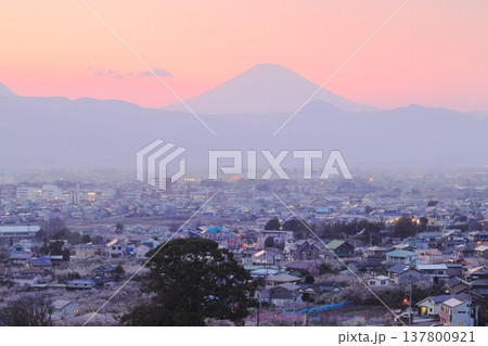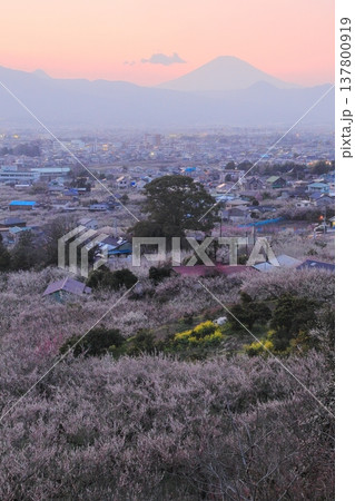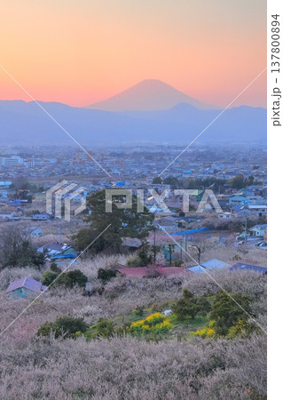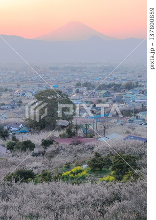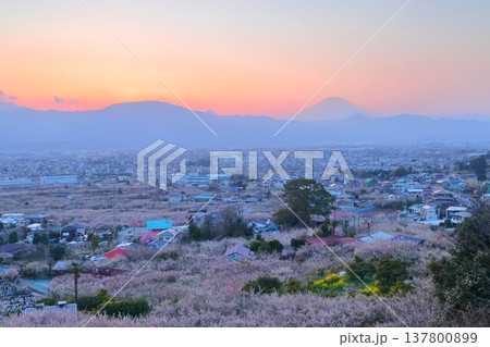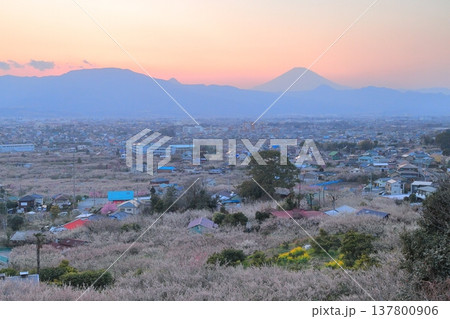 神奈川県小田原市 見晴台からの曽我梅林と富士山