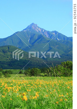 初夏の富士野園地 エゾカンゾウの花と利尻山