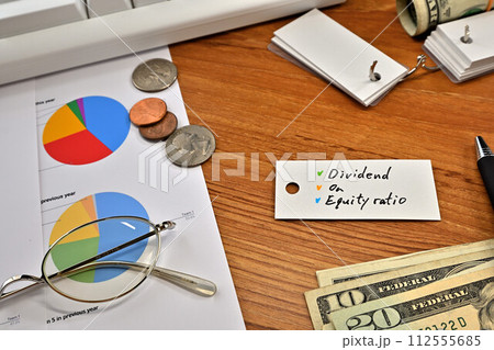 Dividend on equity ratioと書かれたカードのあるデスク