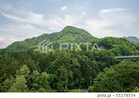 名胡桃城址からの景観 三峰山 後閑駅方面 群馬県みなかみ町