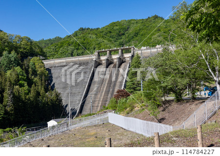 四万川に建設されたアーチ式コンクリートダムの中之条ダム