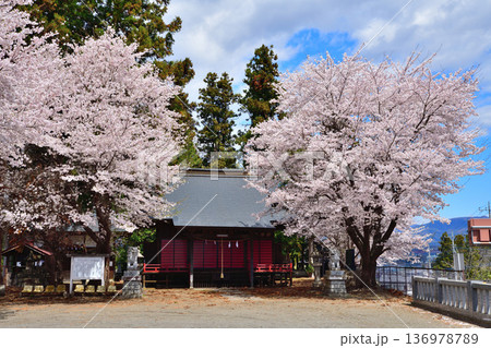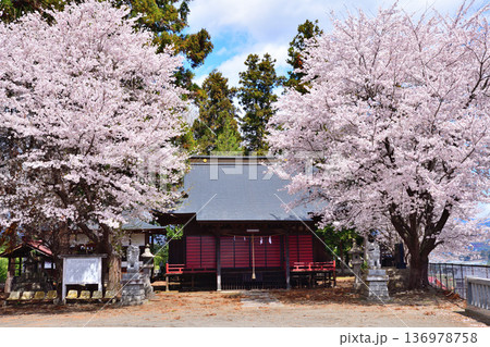 大森神社境内 満開の桜 群馬県昭和村