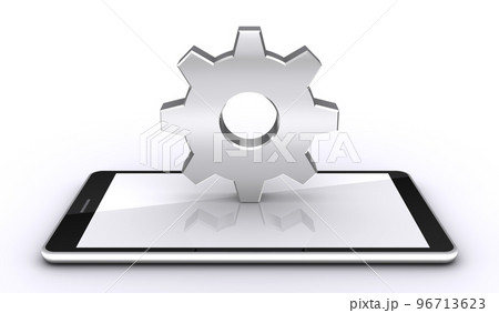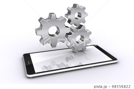 歯車アイコンとスマートフォン、モバイル機器の設定やメンテナンスのイメージ