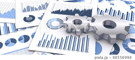 歯車とビジネスグラフやチャート、設定アイコンと資料データ