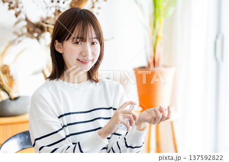 制汗剤スプレーを使う女性(脇・デオドラント)