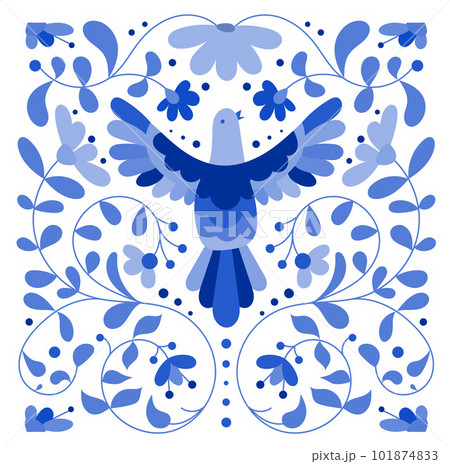 Mexican otomi embrodery ornament. Colorful Mexican Traditional Textile Embroidery Style. Folk otomi style graphic, wallpaper. Festive mexican floral motif.