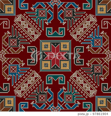 Geometric seamless embroidered pattern traditional design.