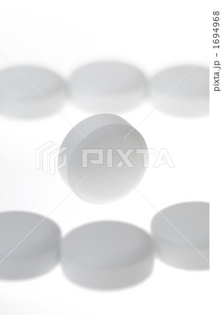 囲んだ錠剤の中央に立てた白い錠剤