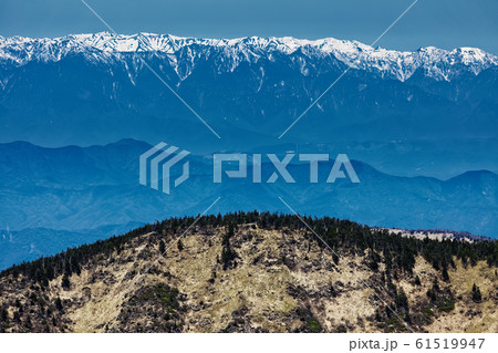 浅間山外輪山・前掛山稜線と残雪の北アルプス