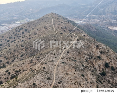 Cliffside path overlooking landscape, High mountain route overlooking ocean and cityscape background