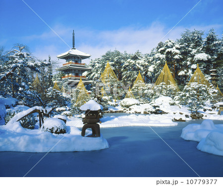 曹洞宗金剛宝山輪王寺の日本庭園 三重塔と雪吊り