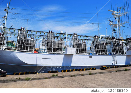 大型のイカ釣り漁船