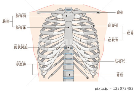 胸部周辺、肋骨のイラスト Ribs illustration