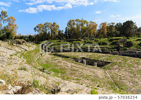 Old grown with grass stairs of Ancient ruins of Anfiteatro Romano Siracusa
