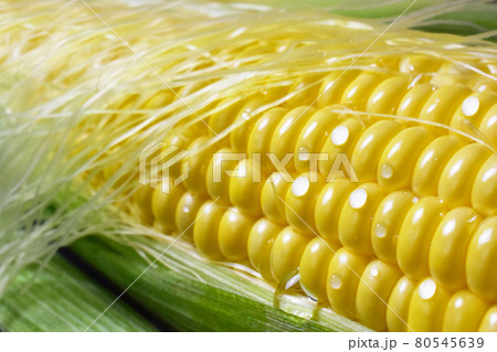 採れたてみずみずしいフレッシュなとうもろこし 皮とひげ付き