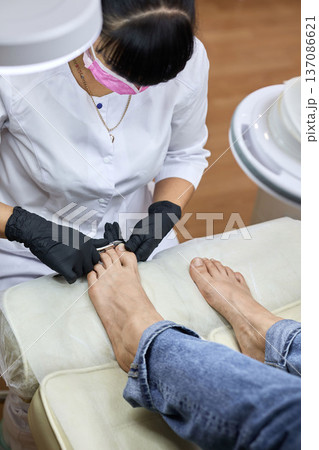 Pedicure procedure with nail clipping in salon