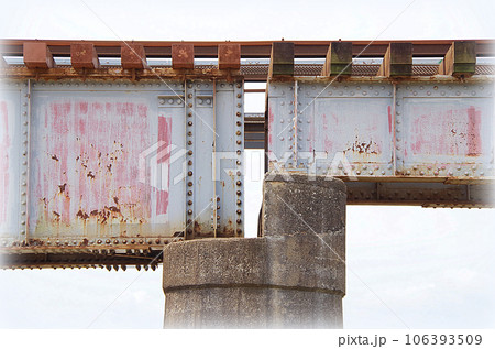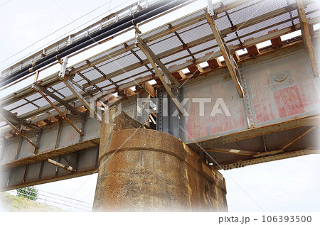 河川敷から見上げる鉄道の橋梁(イラスト風)