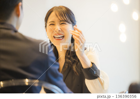 デートでカフェ・飲食店・レストランに来た笑顔の女性