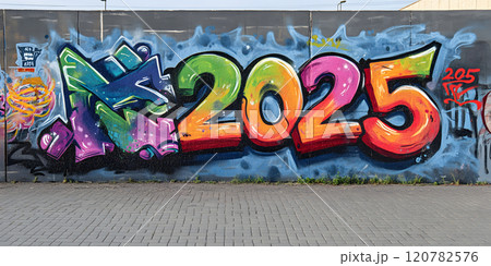 鮮やかな2025年のグラフィティアートが描かれた壁