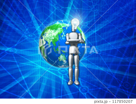 新しいアイデアが生まれるイメージイラスト、AIと人間、ベクター