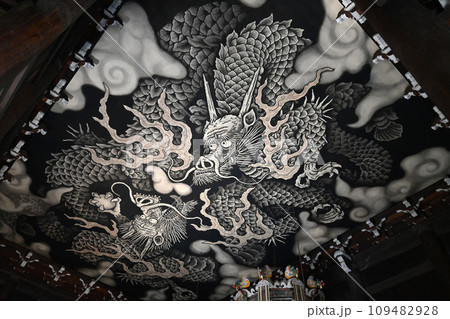 京都市東山区 建仁寺法堂の迫力ある双龍図