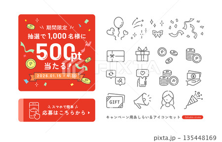 ポイント還元!キャンペーン用のあしらいとアイコンセット (ベクター・線画) 山積みコイン