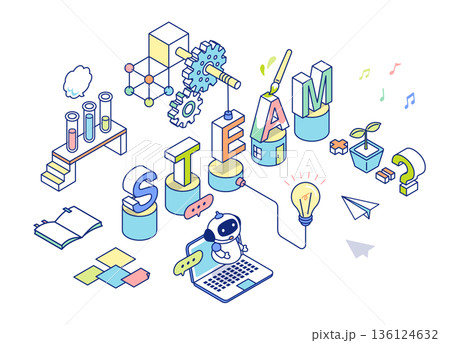 STEAM教育をイメージしたアイソメトリックイラスト