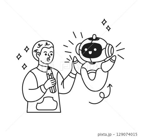 Cartoon Robot and Boy HighFiving Cheerfully