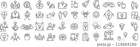 ベクターでモノクロのアイディアに関する線画アイコンセット