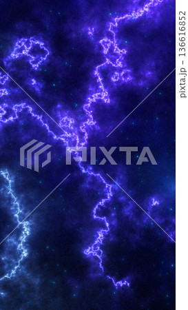 Purple cosmic cloud with lightning-like energy veins and tiny stars, abstract space nebula background with electric plasma texture