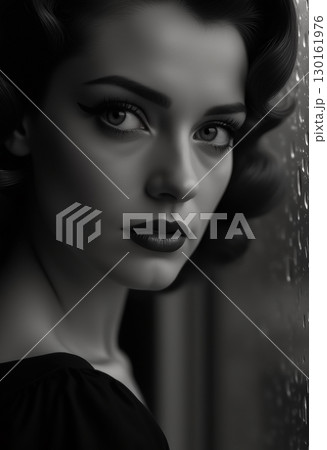 Mysterious Woman in Black Lace Mask and Embellished Dress
