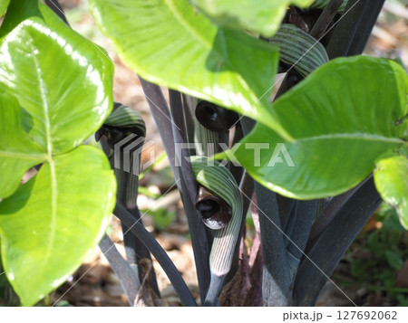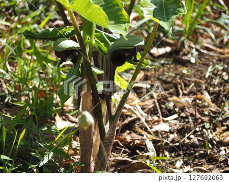 自然 植物 ムサシアブミ、新しい芽が地面からニョキニョキ伸びてきました①