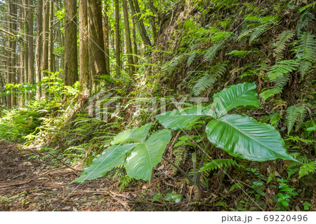 自然 植物 ムサシアブミ、大きな三出複葉が類似の種類との識別点だそうです(こちらの葉は展開中)