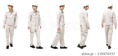 ヘルメット作業着の建設工事工場の男性の全身人物切り抜き素材