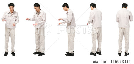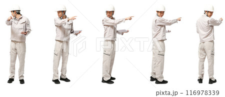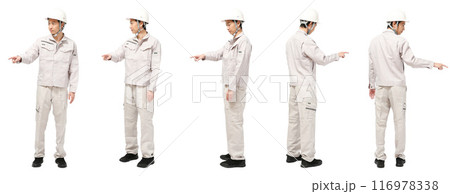 作業着の建設工事工場の男性の全身人物切り抜き素材